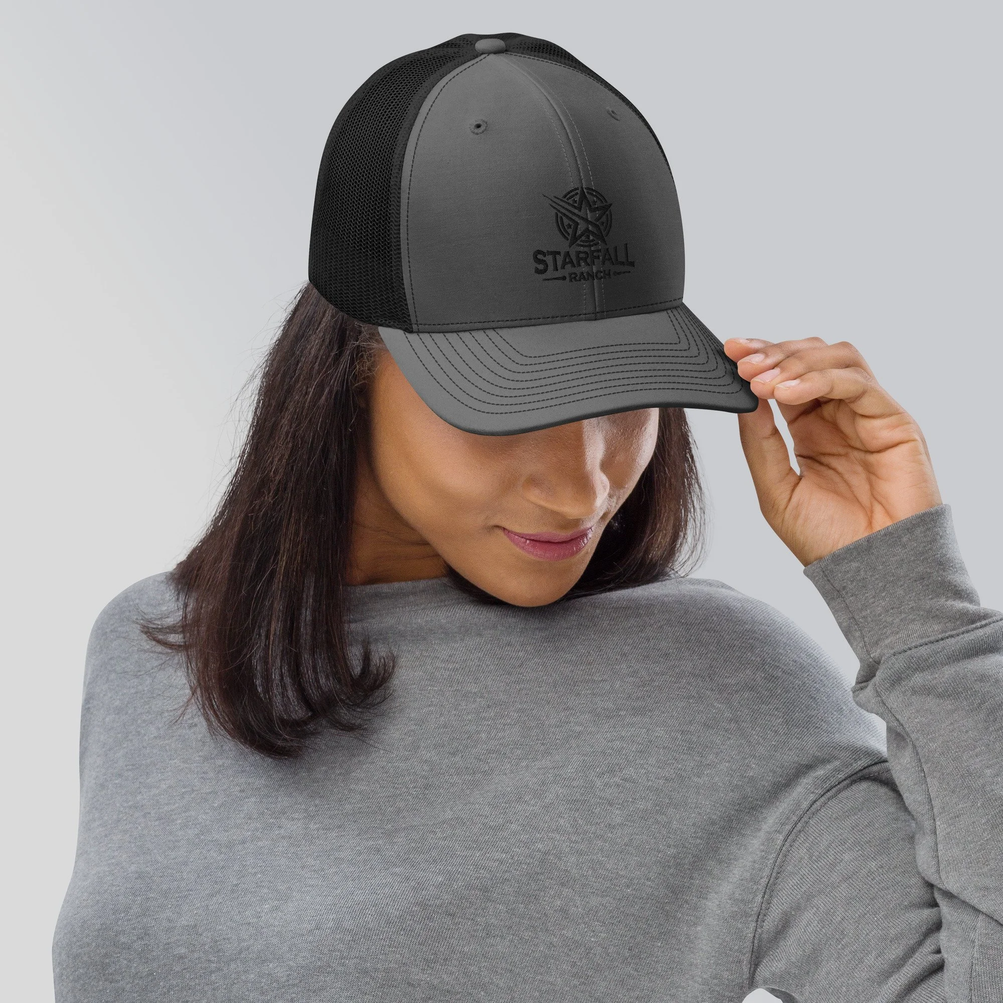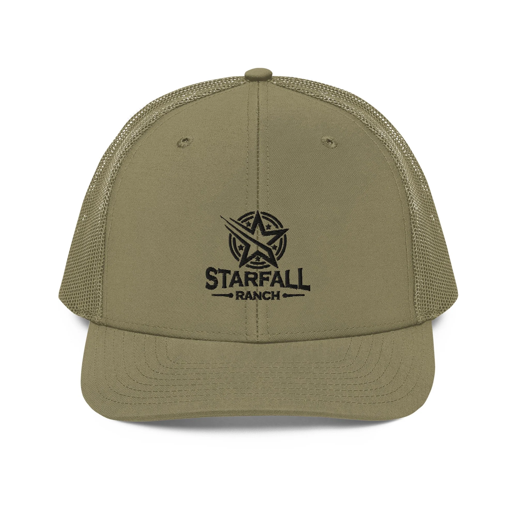 Complete your outfit with an embroidered Starfall Ranch trucker cap— It has a classic structured fit, adjustable plastic snapback, and a curved visor that matches its underbill.